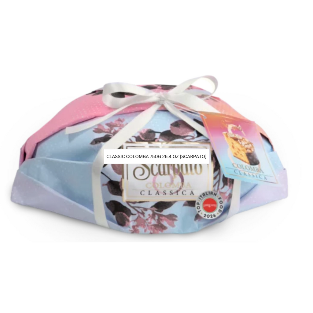 Baked with care in the heart of Italy, the Classic Colomba features a light, airy crumb enriched with fragrant notes of citrus and vanilla. Its surface is typically dusted with pearl sugar and slivered almonds, giving each slice a delicate contrast of sweet crunch and tender interior.